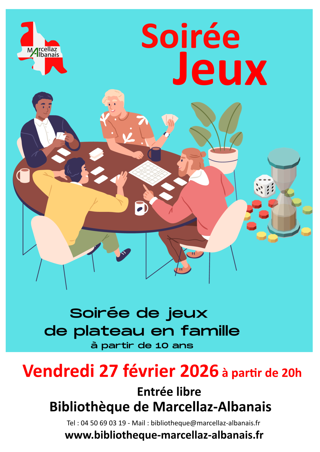 Quand ? Le vendredi 27 février à partir de 20h00, à la bibliothèque de Marcellaz-Albanais.