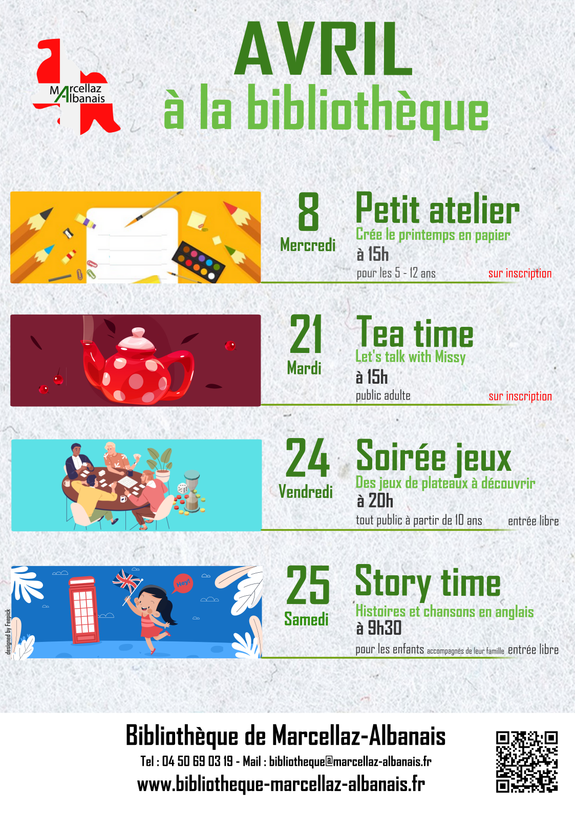 Entrée libre ou sur inscription auprès de la bibliothèque. www.bibliotheque-marcellaz-albanais.fr