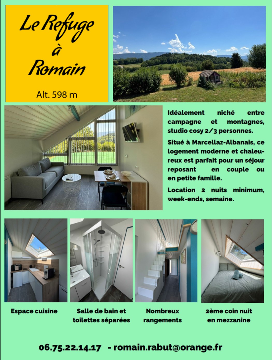 60 m2) situé à l’étage de l'habitation des propriétaires au calme, avec vue panoramique sur l’Albanais.Contact : Georges et Marie Jeanne VIOLLET